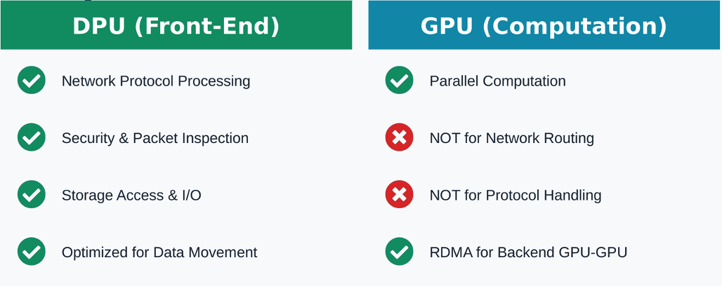 Figure 4: DPU handles infrastructure (front-end), GPU handles computation (parallel processing)