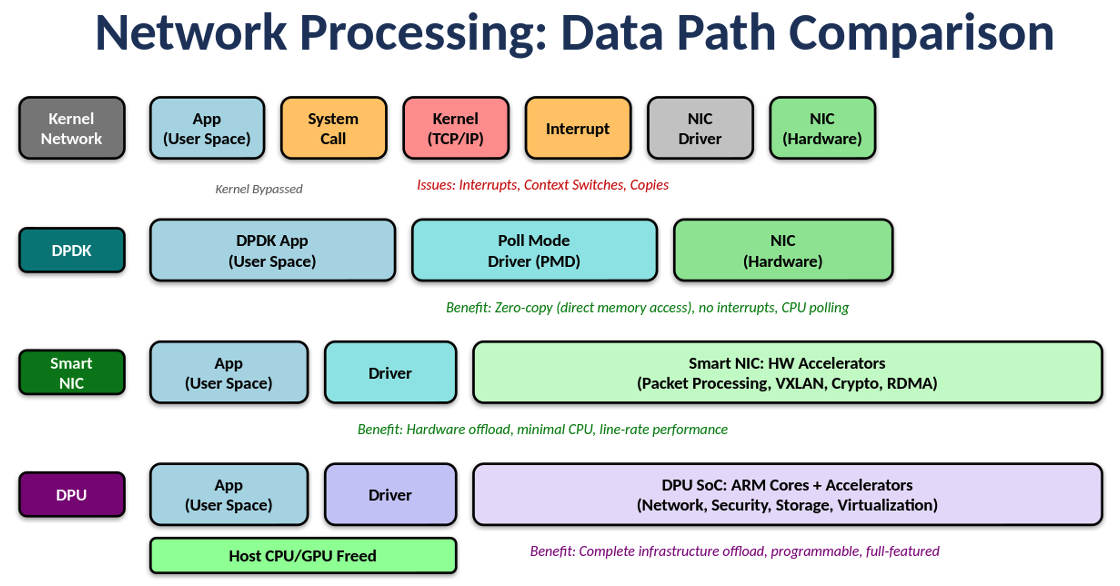 Figure 3: Network Processing Evolution from Kernel to DPU