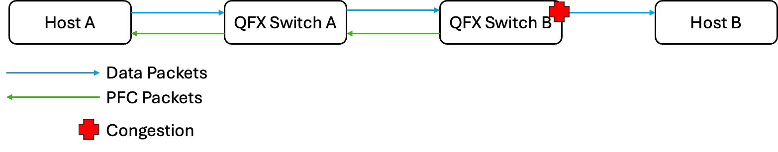 Upon receiving a PFC pause frame, the peer device will slow down the traffic rate by pausing its egress queue. This can create back-pressure on the corresponding ingress port on the peer device and can generate PFC towards its peer. Thus, a chain of PFC-based flow control is achieved all the way from the congestion point to the traffic source. On the same switch, both lossless and lossy traffic can co-exist.