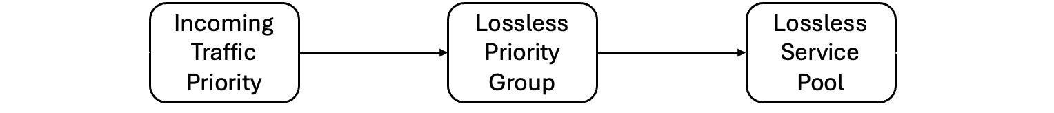 - Based on the classifier, lossless priority traffic is mapped to one of the lossless egress queues, which are also associated with the lossless service pool.